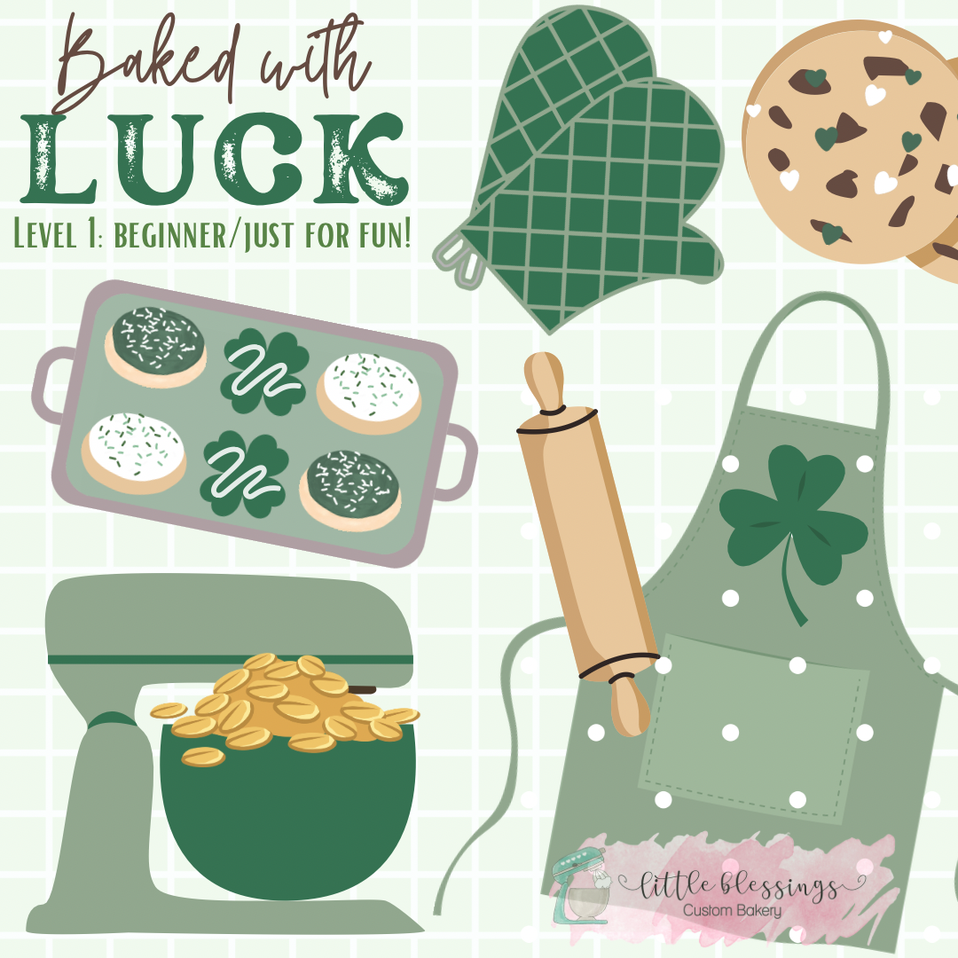 We are excited to host our COOKIE workshops where you can come out and enjoy some time with friends, learn techniques, and create your own make and take items! This Cookie Workshop will feature ROYAL ICING techniques – you have your choice of our BAKED WITH LUCK themed workshop dates at checkout. We will provide all of the supplies you need to create your lovely cookie set including the freshly baked sugar cookies, royal icing and piping bags, food colors, tools, and packaging needed to take home the completed project in addition to the expertise of local professional bakers teaching the workshop! You get to customize the style of your designs that will be uniquely YOU.